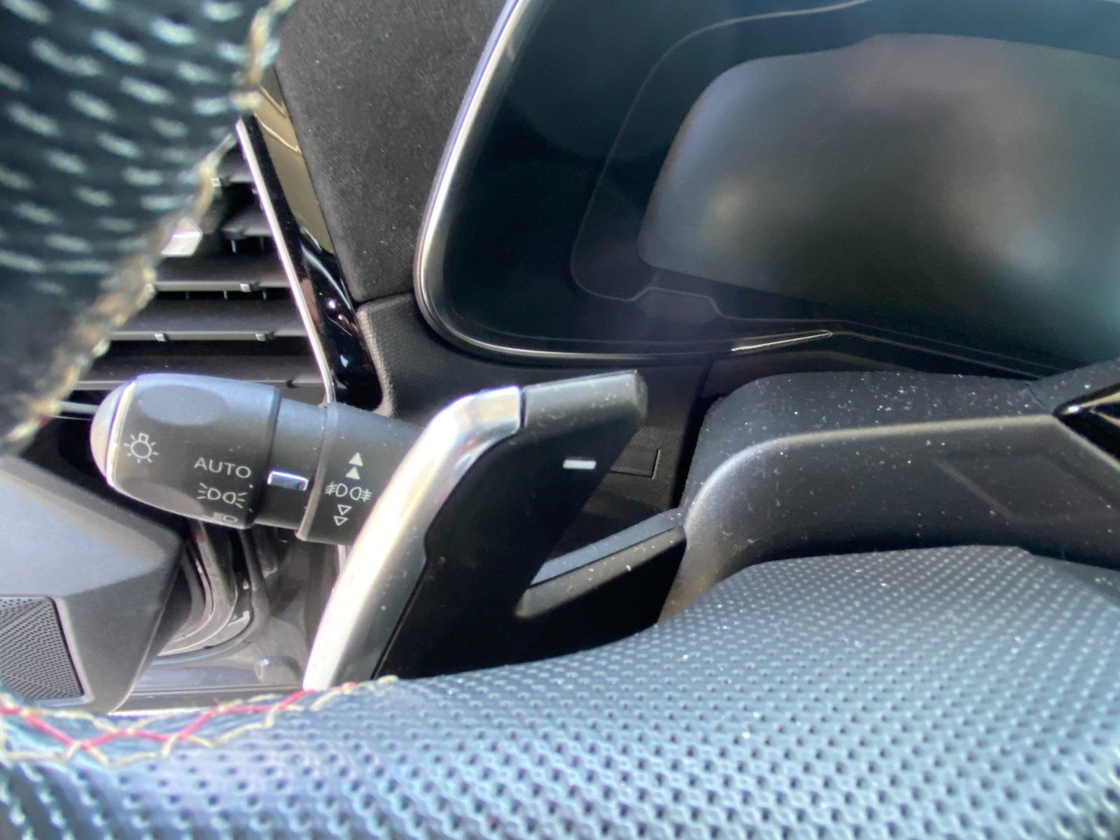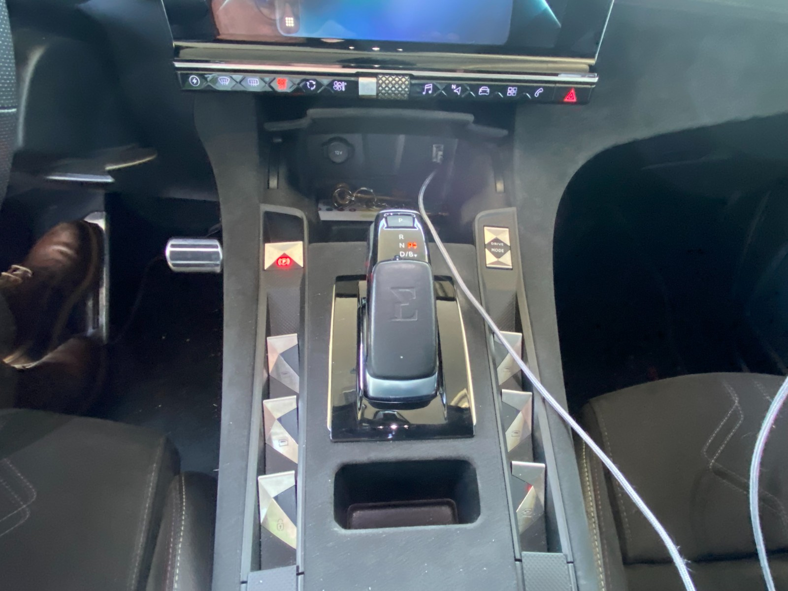 Pommeau de levier de vitesse avec embossage intégrant l'emblème E-TENSE